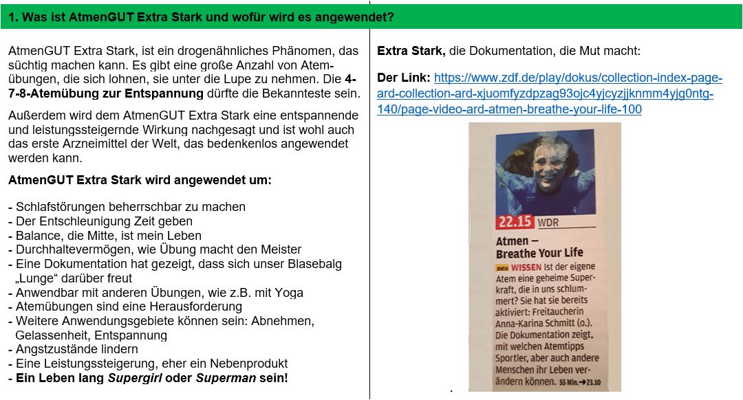 und fand somit die Möglichkeit mich neu zu finden. Die Entspannung-Ausschnitte, die medizinische Aufklärung über die Lungenfunktion und natürlich