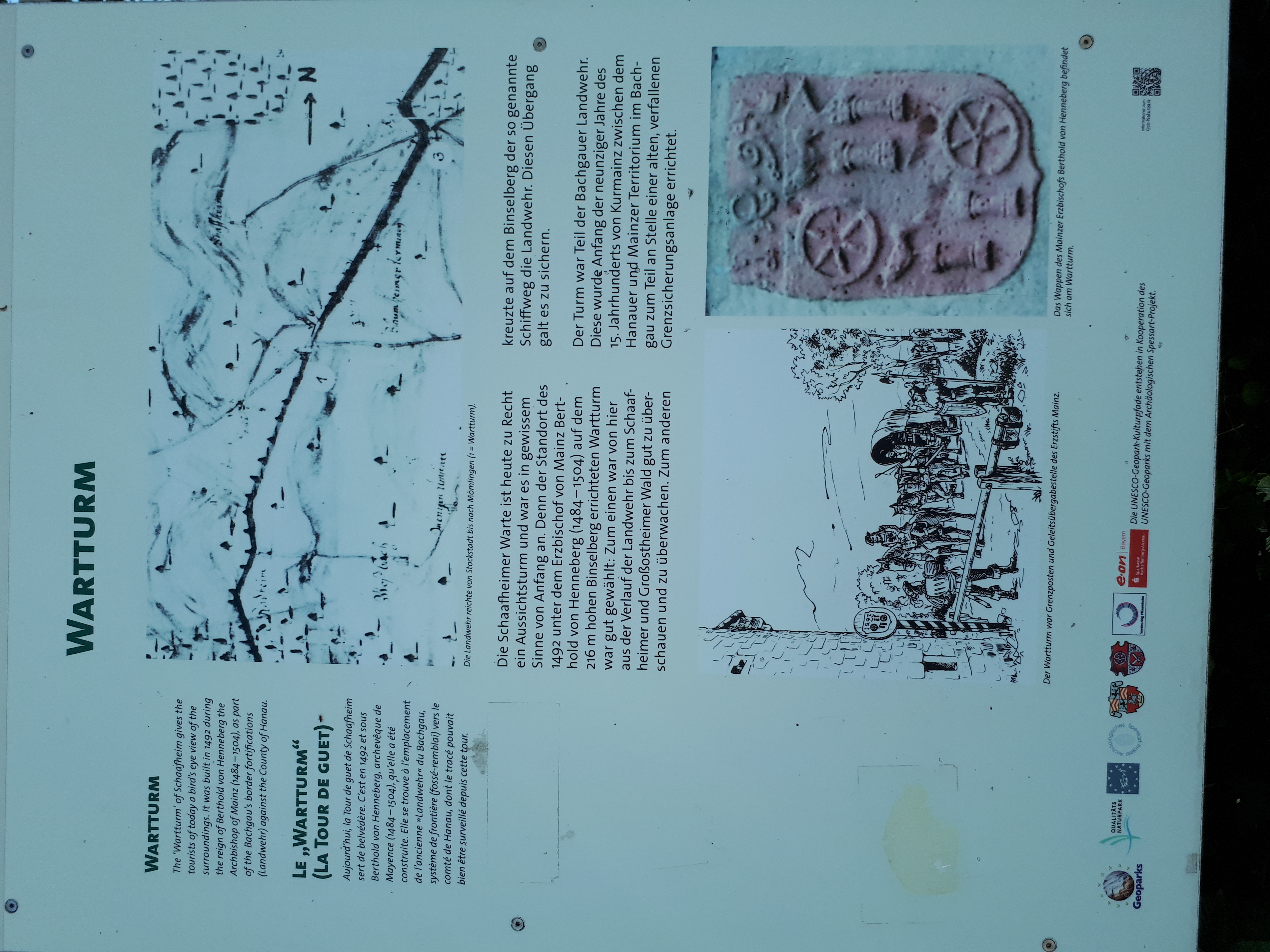 abwechselungreich durch Wälder, Felder und Wiesen mit sehr schöner Fernsicht auf Odenwald und Taunus. Von zirka 300 Höhenmeter bis zum Hohe-Wart-Haus auf